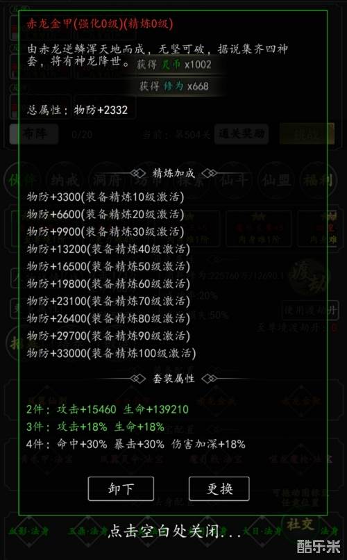 装备精炼:通过消耗精炼石跟灵币,提升装备的精炼等级;
