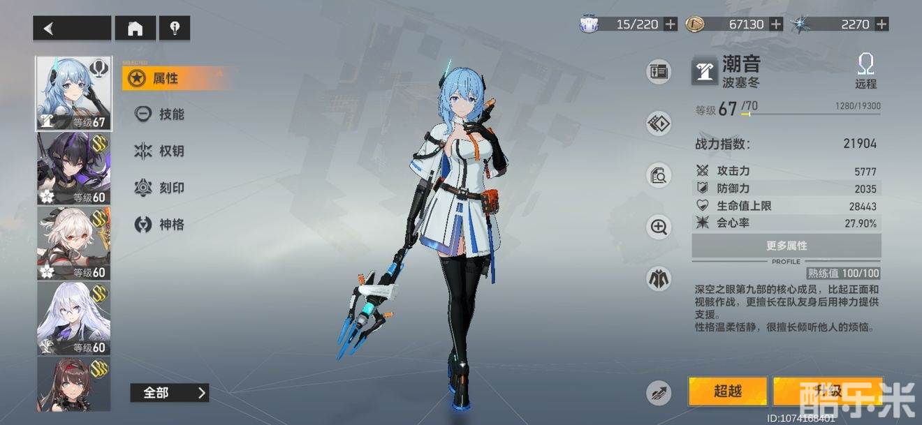 整体用下来唯一感受是潮音在60级的时候,打轮回7-8会卡下关卡。60级潮音才2万出头战力以及5000出头攻击,现在再回去打就很简单了。这套配置打轮回8关,不用在乎抗性,即使配的垃圾队友都可以躺着过关。