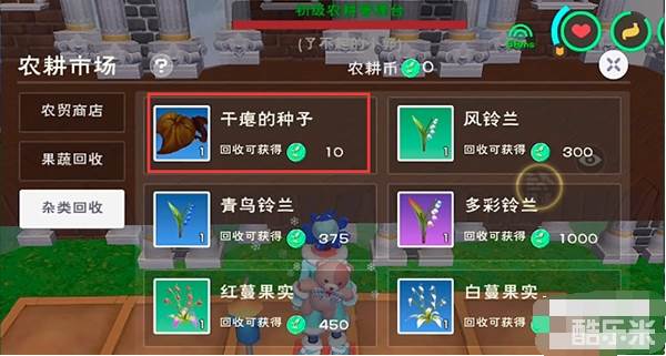 2、在农耕市场的【杂类回收】中兑换10个农耕币,每50个农耕币就可以兑换种子。