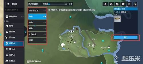 1、首先我们打开地图,筛选垂钓点,选择需要的鱼类,然后前往地点。