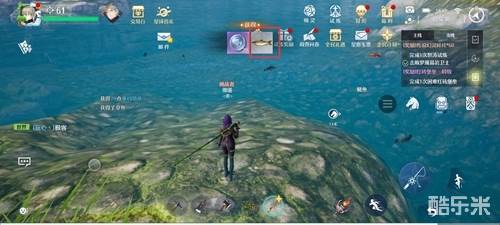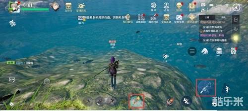 2、到了之后来到河边,点击鱼竿进行钓鱼。