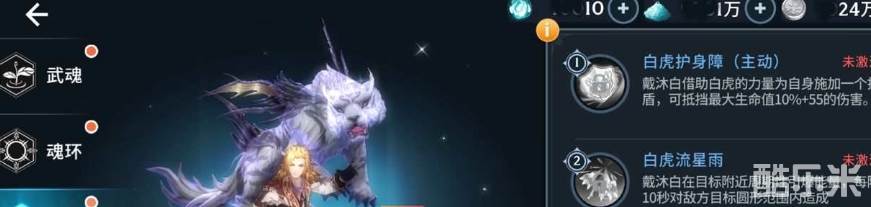 天赋玩法是角色突破到40级的时候,每提升10级就可以装备一个新的魂环,同时获得5点自由分配的属性点。游戏内的基础属性包括,力量/体质/敏捷/技巧。而戴沐白作为游戏内的坦克角色,加点方面自然是要以力量/体质为主,个人推荐2力量/3体力的方式就可以了。