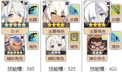 4、可能会有人问为啥不推荐技伤角色当队长,技伤角色可充当首发队伍二三号位或是sub位的候选,一来能解决不知道放谁的问题,二来能充分利用强化弹射pf带来的收益,转自开心电玩。