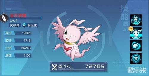 5、第5位数码宝贝乃是喷射希尔芙兽,简称风车。凭借着奥义技【喷射冬季】联合得意技【精准之风】的单体降速和群体提速的作用,风车在PVP中能够稳定的保证我方的先手,同时风车自己的速度也因为被动技【加速之风】而有了一定的保证,目前在高段位天梯玩法中,堆速度到3300以上的风车简直就是神一般的存在。保底0破即可使用。