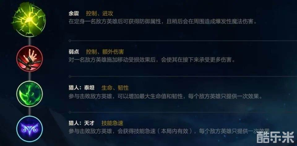 符文方面,我们可以选择余震来配合技能消耗对手,而通常走法坦路线的洛点出猎人:泰坦也能进一步增强自己的坦度。