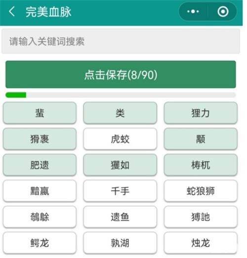 如图,完成上述操作后,假设已拥有这几种完美血脉。此时8只宠物都有6种血脉,其中宠物8新激活了鵸鵌、遗鱼(完美)、猼訑。