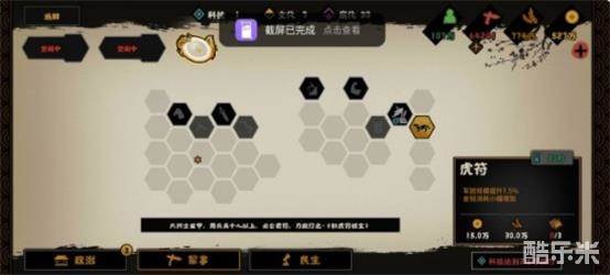 虎符上下两个政策,鼓舞(四个士大夫,加15%规模),协同(6个士大夫,加20%规模),后期才用得到这两个政策。