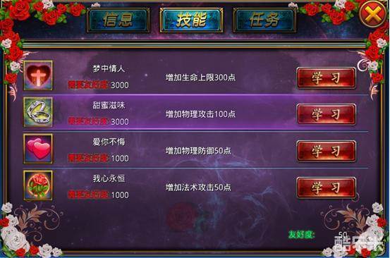 5.结为夫妻后,双方均可消耗友好度学习夫妻技能。