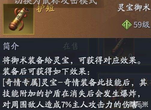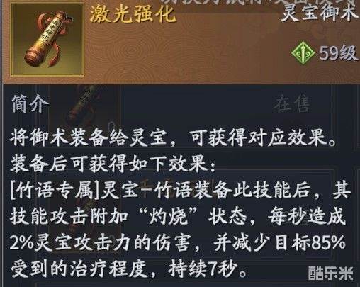 ,专属橙色技能(7秒内2%/s灵宝攻击伤害+减85%治疗)