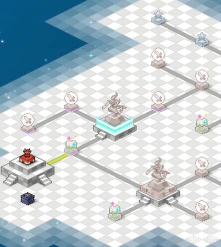 点击技能板进去后会看见很多雕像建筑,第一版面有四个大雕像和很多小雕像,每个大雕像以及其分支都与角色的一个被动技能(或者是大招)相关联,点亮大雕像可以解锁技能,点亮小雕像可以提升该技能效果。