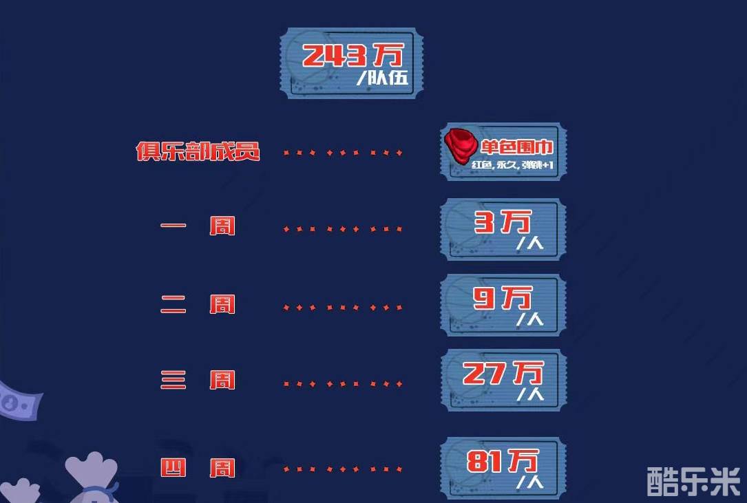 活动期间内,凡是在首周获得周冠军的俱乐部队伍每人可获得30000代金券奖励。