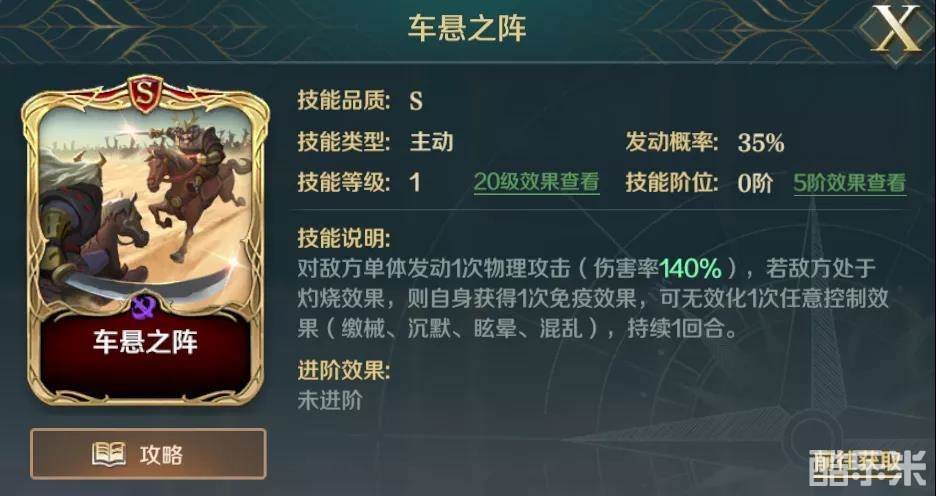 【车悬之阵】在打出一定伤害的同时,可以给予关羽一次免控的机会,让其无视缴械、沉默、眩晕、混乱状态一个回合。