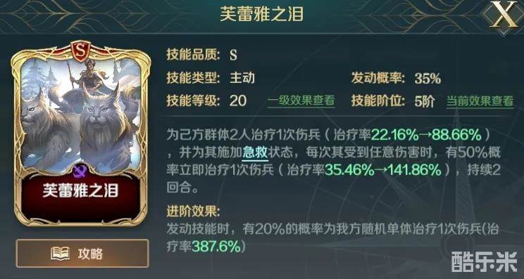 以芙蕾雅之泪为例,上述几个技能都是回血技能中较为好用的S级技能。而效果类似的A级技能有: