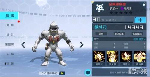 2.天赋点:全额加满输出系,一拳一个小朋友。因为被动技“全金属化”的存在,只要叠满状态,金属猿猴兽不用点生存、防御天赋就能比较耐揍。大家也可以根据喜好,点上防御强化及、闪避强化。