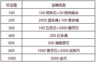 【活动内容】活动期间,每消费1000金币,即可获得100好运值,累计获得好运值可开启奖励宝箱。