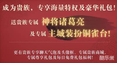 活动七:贵族福利 独享海量特权送神将诸葛亮