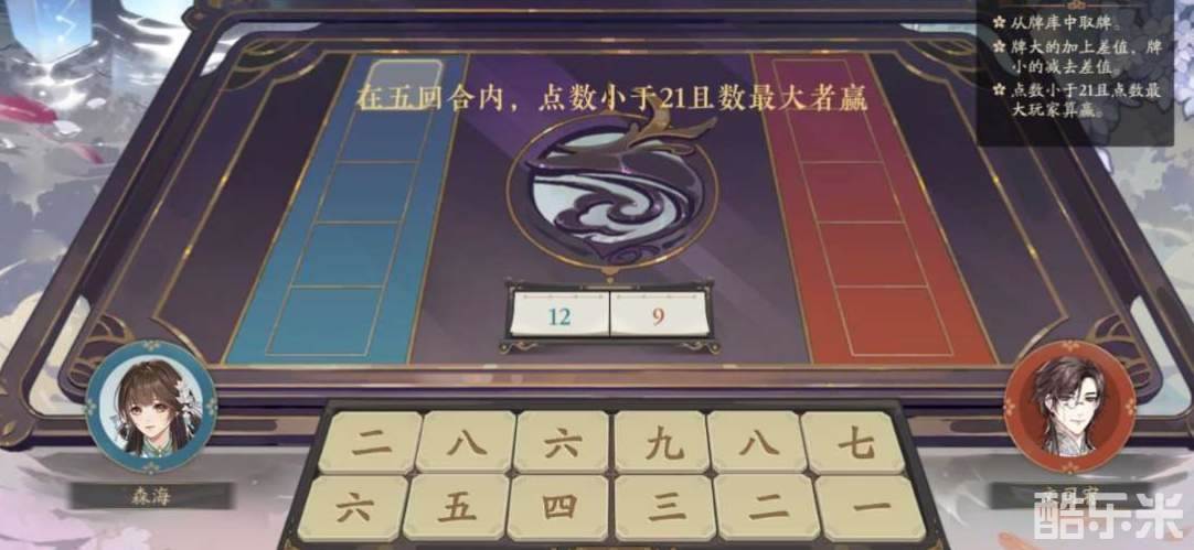 2、算学课的难度比较高,如下图所示,玩家性需要在牌库中选择数字,牌大的则加上差值,牌小的话就会减去差值,放完所有牌以后点数小于21且数值更高的一方即为获胜;