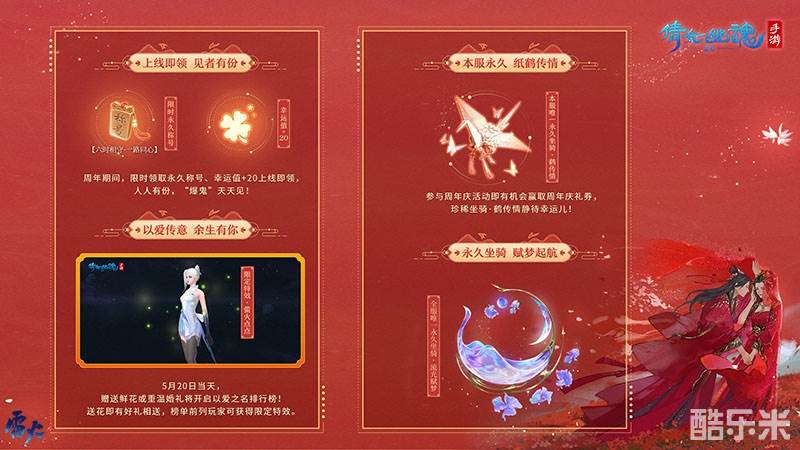 《倩女幽魂》手游六周年全新资料片【六载倩影】于4月28日正式登场,同时,新大区【今生缘】首服【锦鲤之约】火爆开服!六周年庆活动今日隆重上线,全新玩法乐享不停!【葫芦兄弟】经典联动回归,海量外观限时返场;全新多帮会混战占点PVP玩法【天地棋局】热血来袭;第十届跨服明星赛火热进行。5月19日18:00,六周年直播狂欢开启,不仅有重磅猛料、神秘豪礼相送,更有免费永久坐骑【鹤传情】等你来拿!