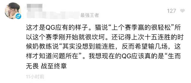 这位来自于《王者荣耀助手》昵称为“黎铁铁“的网友评论道:“这才是QGhappy应有的样子。猫神说:“上个赛季赢得很轻松。”所以这个赛季刚开始就很坎坷,还记得春季赛十五连胜时Gemini说:“其实没想到能连胜,反而希望输几场这样才知道问题所在。”我想现在的QG是真的“生而无畏,战至终章。”