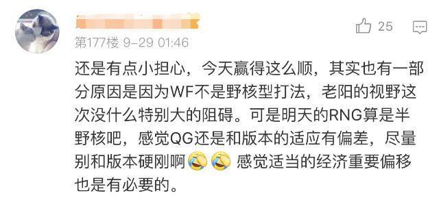 在QGhappy的官博评论区中,网友们除了为QGhappy的首胜欢呼外还给他们提出了一些自己的建议正所谓当局者迷旁观者清,这位微博昵称为“最可爱的小傻子“的网友评论道:”还是有点担心,赢WF这么顺有一部分原因是WF不是野核型打法。QGhappy与版本还是有些偏差,尽量别和版本硬刚,适当的经济重心偏移还是有必要的。”