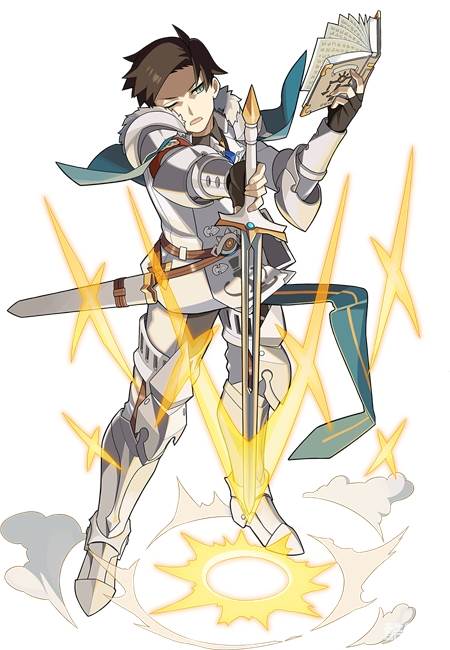 必杀技向自身前方发出光剑、对命中的敌人造成光伤害/赋予队伍全体再生效果/赋予参战者全员攻击力UP效果最大攻击段数3,最大倍率12/参战者全员攻击力UP50%持续15秒,技能槽:500能量