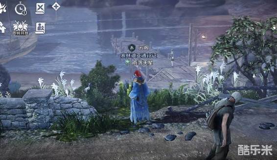 3、最后我们往右侧海边走,看到渔船,在渔船边上即可获得渔神祭知识。