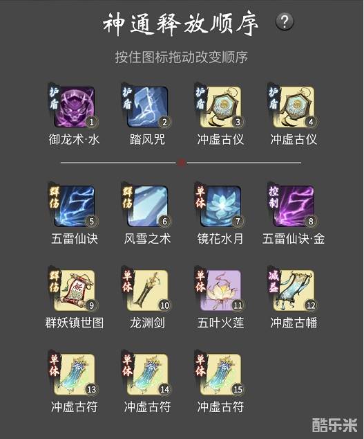 2、神通建议排序思路:返虚保持四盾能够保持有效的护盾轮转,御龙水起手,运气好踏风还能免疫个对方控制!