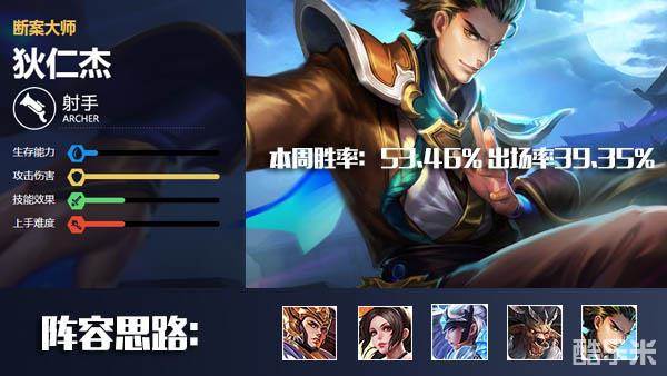 王者荣耀峡谷神断狄仁杰,一周胜率最高的射手
