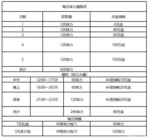 游戏中体力存储上限120(10级),体力恢复15(上限)。以下是小编整理的体力值获取方式。目前游戏内的体力值很少用于主线剧情通关消耗,主用与武将升品阶,材料扫荡中。