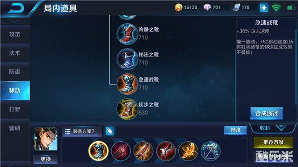 移动装备选择:影忍之足、抵抗之靴、急速战靴