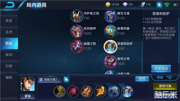 贤者的庇护也是一件通用性很强的装备,射手、法师、战士都可以选择购买,其最大的作用就是可以使英雄死亡后快速复活,实现二次作战,在逆风局中,狄仁杰也需要购买贤者的庇护,用于提高生存能力。