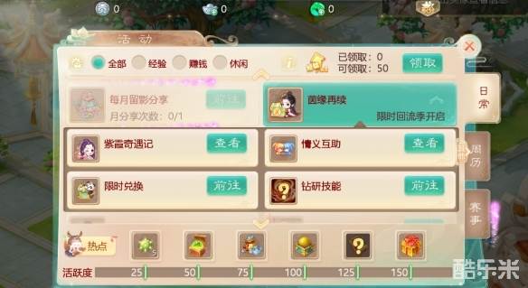 在回流季正式开启后,侠士进入游戏内,在活动日程界面点击“茵缘再续”-“紫霞奇遇记”,即可开启回流活动系列任务。