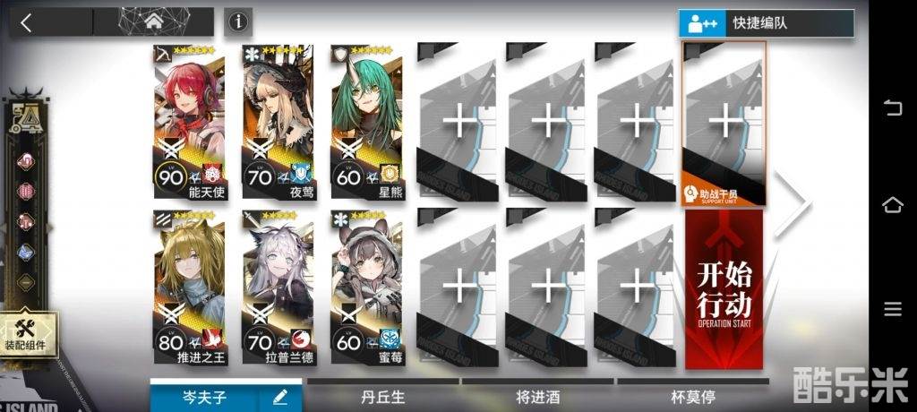开局部署顺序为能天使↓推王↓拉普兰德←星熊←蜜莓↓夜莺→