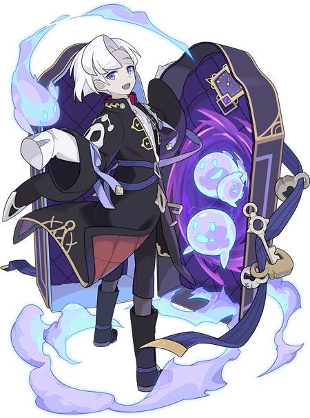 必杀技 往四个方向射出灵魂、对命中的敌人造成暗伤害[棺桶COUNT数越高伤害UP]+攻击力DOWN效果最大攻击段数4,最大倍率9[棺桶COUNT数越高伤害UP2.5%]/攻击力DOWN30%持续30秒,技能槽:400能量
