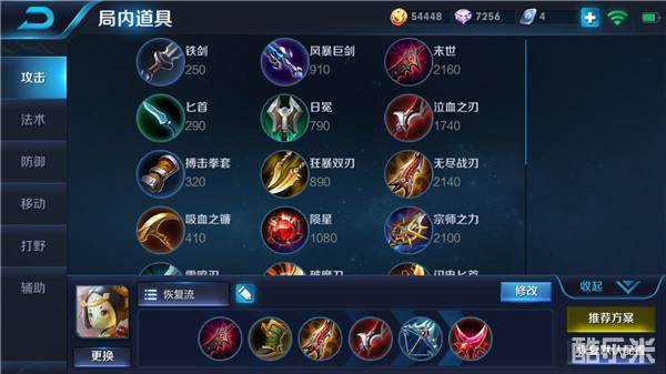 六神装:末世、影忍之足、无尽战刃、泣血之刃、破甲弓、影刃(或贤者的庇护)