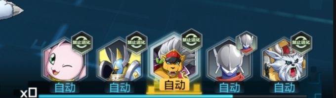 推图的时候,下方进化可设置为如图所示,只留下正义兽进化,一回合两脚!具体站位可随意调整,尽量保住天使和正义兽!(D13有很多天使兽小怪,记得自动打的时候集火先消灭,要不然会很恶心!)