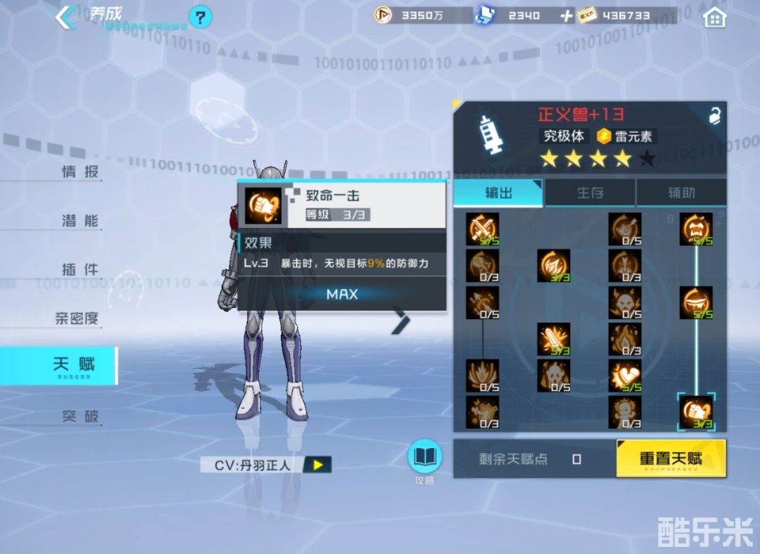 天赋:见下图:推荐点满致命一击,无视防御中后期很重要!