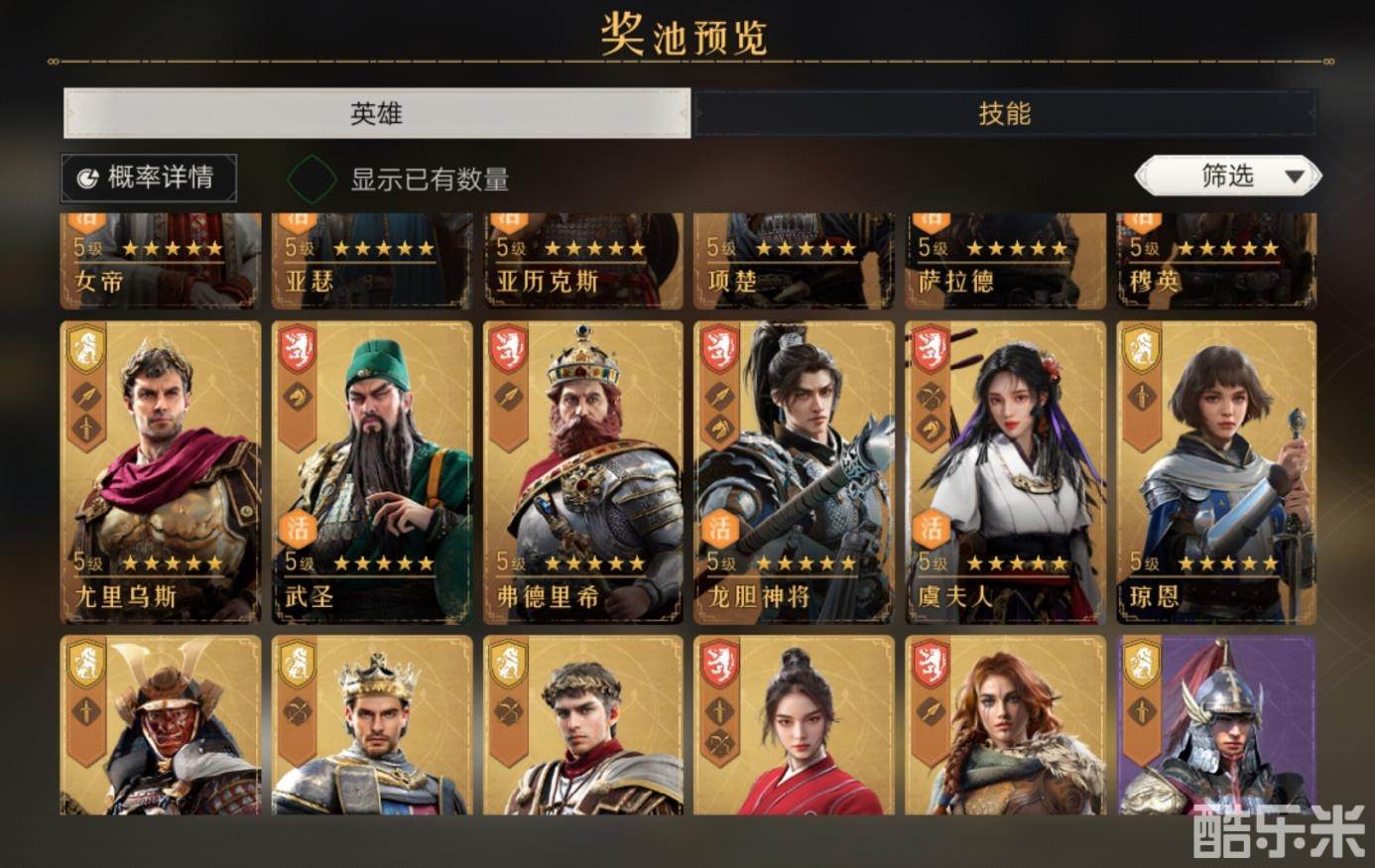在这个卡池里,即便我们没能招募到兰陵王,也能有大概率招募到赵云、关羽、虞姬,包括阵容适用的一些五星技能,提升队伍的整体培养度,所以将帝国币投入到该卡池是最适宜的。