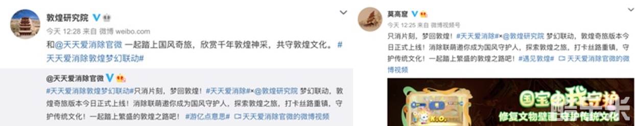 本次天天爱消除敦煌奇旅联动版本的推出受到了玩家的一致好评,敦煌研究院的官方也前来互动。其实敦煌与各类游戏的联动已并不少见,但本次天天爱消除与敦煌研究院官方联手打造的敦煌奇旅版本,为大家呈现了一个不一样的轻松、休闲、有趣的敦煌,利用更加亲民可爱的风格,结合数字化手段,吸引更多用户了解我国传统文化的魅力。
