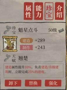 满级属性:建造260,农牧90,制作788,理财622,探险432。