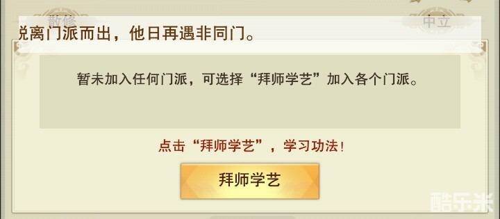 1.如何刷门派当没有门派时,玩家会处于“散修”状态,点击“拜师学艺”即可根据自己的修为随机刷进各大门派之中。想不想修