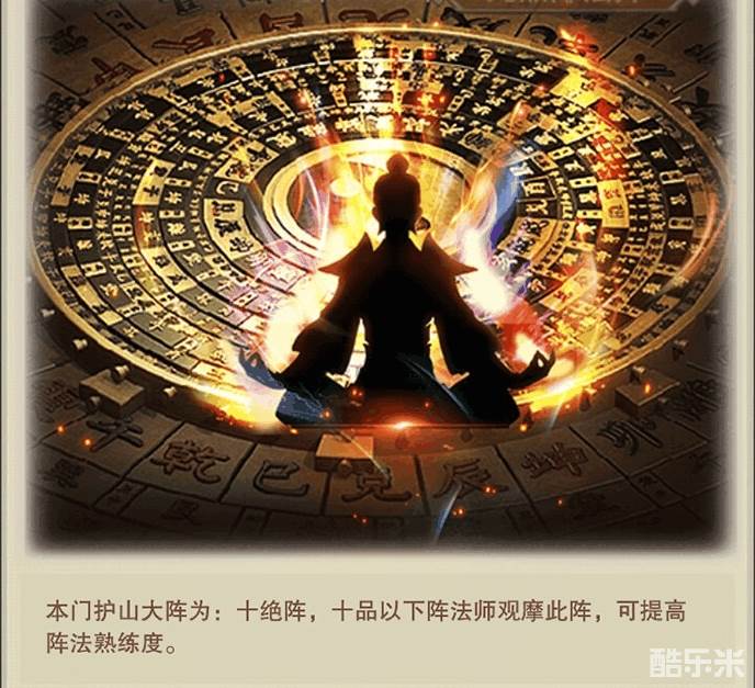 (3)护山大阵不同于炼丹房和炼器室,护山大阵只能增加阵法师的职业经验,永远无法领悟到阵法图纸。经验增加规则也与炼丹房和炼器室相同。