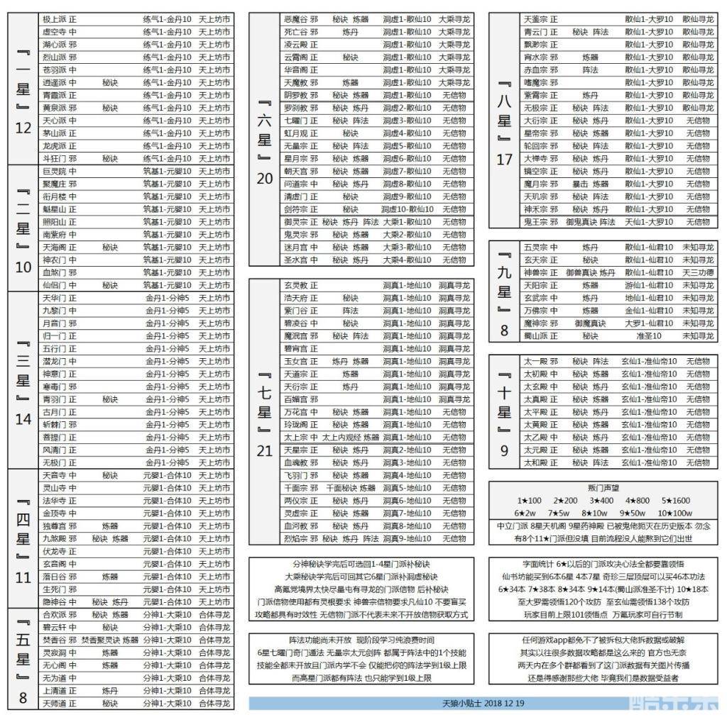 三、想不想修真全门派列表本表格包含了1-10星门派的一切信息(进入限制,炼丹炼器阵法分布,是否有秘籍等等)。