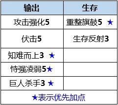 对决场合中除了保障生存能力外,还需提升自身一定的生存能力才能有出手的机会。利用多段攻击的奥义技,充分发挥追击插件的特性。天赋突出输出,生存方向去点即可。
