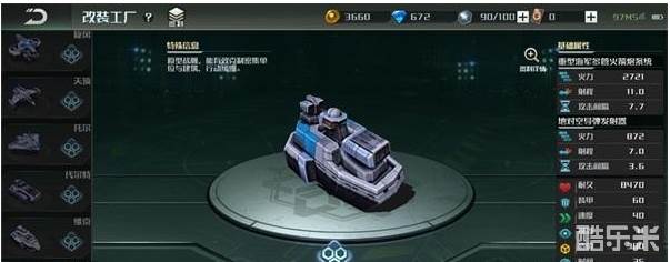 侦查小艇,这个的改造是我推荐点的,有利于侦查效果,一般来说海上打架不靠这玩意,血比一级战车略薄,伤害略高。