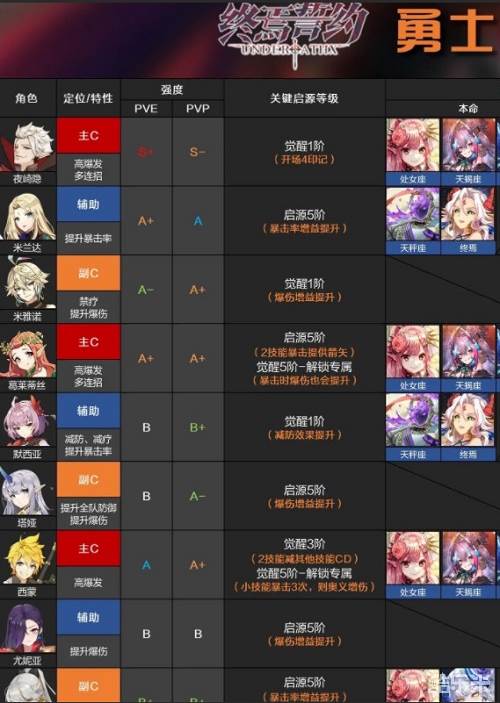 2、玩家可以对照这上图的强度榜来培养各个角色,希望可以对玩家们有所帮助。