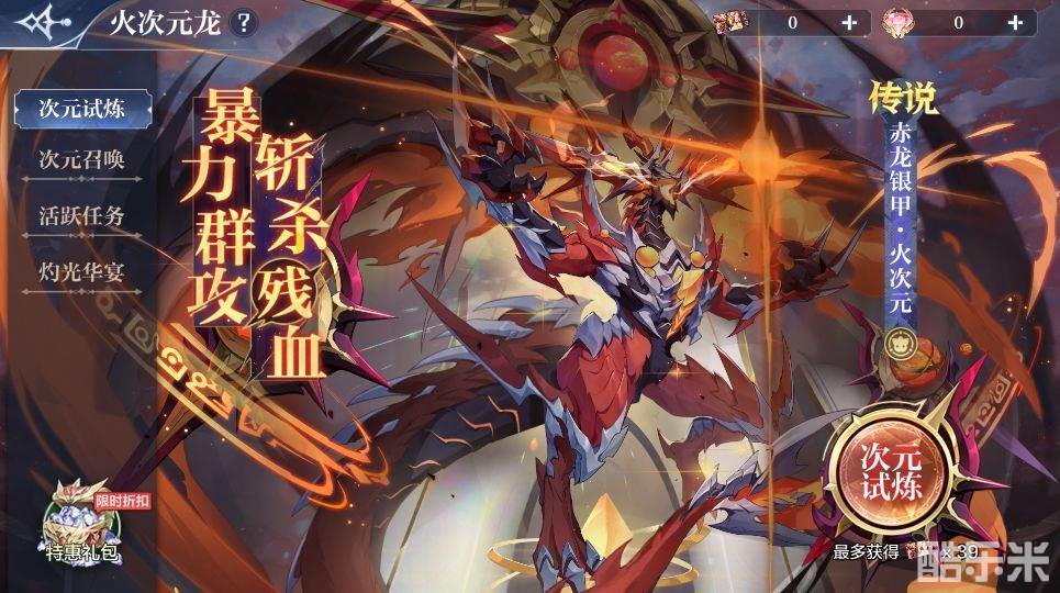 活动内容:暴力群攻,斩杀残血。最新精灵赤龙银甲·火次元登场。通过完成