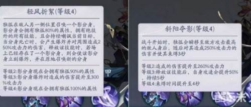 1技能:清风折絮:召唤影分身并继承本体100%的属性(包含闪避及234技能),并且具有嘲讽聚怪自爆功能,300%自爆伤害。此技能主要作用是吸引火力从而保证本体的生存,另外由于100%继承本体属性,其分身的强度完全取决于你本体的强度,相当于2个刺客突入敌人后方;
