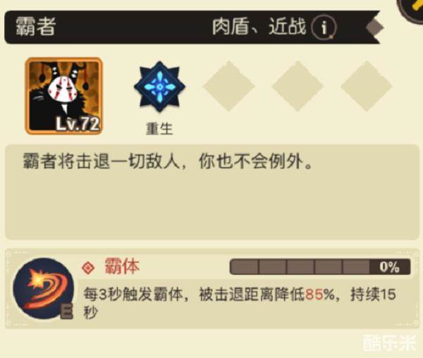 霸体——每3秒触发霸体,被击退距离降低85%,持续15秒。