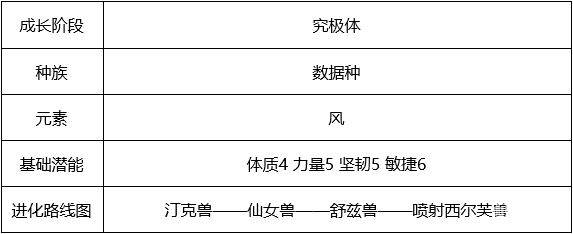 在对决中,速度优势是非常重要的,同时也意味着先手能力的强弱,而这只喷射西尔芙兽不仅自身速度高,还能针对对方的高速度数码兽。
